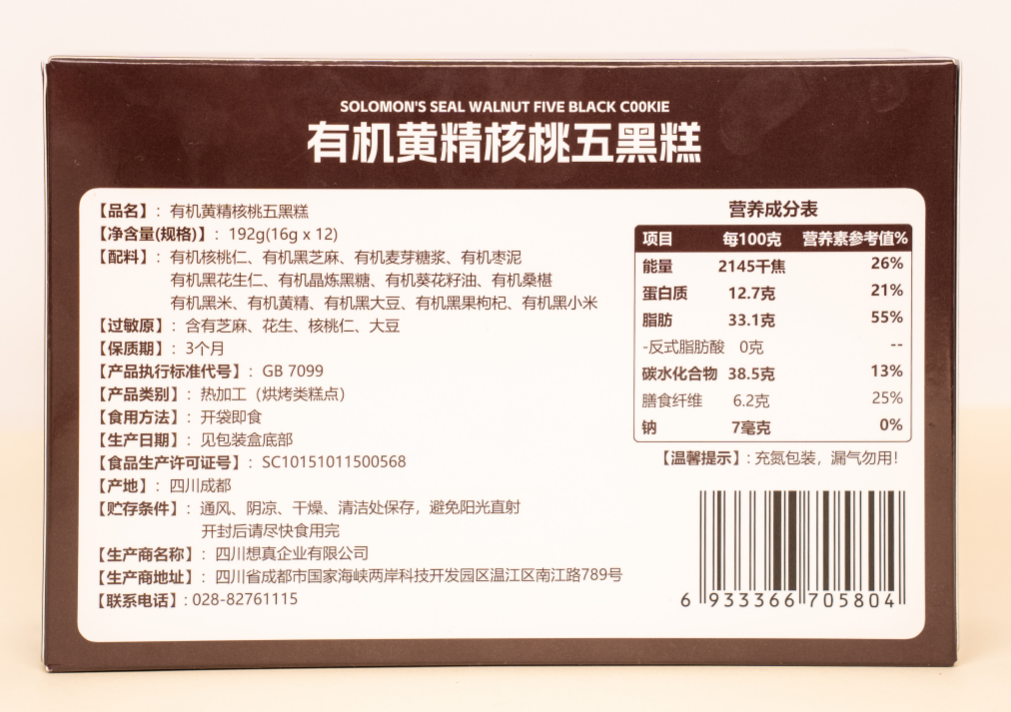 有机黄精核桃五黑糕,从2025年1月新上市。整个配方升级全有机食材,以药食同源黑养食材为主,融入有机黑芝麻、黑桑葚、黑果枸杞、黑花生仁、黑大豆等多重黑能量滋养,采用慢熟热调工艺,兼顾营养与美味,入口软糯香润,轻甜不腻,好吃不上火,独立便携小包装,开袋即食。