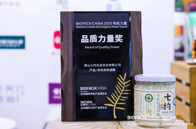 在第18届BIOFACH CHINA展会开幕式暨“有机力量”奖项颁奖典礼中,黄山七约生态农业有限公司凭借“有机原味酒酿”摘得“BIOFACH CHINA 2025 有机力量——品质力量”奖项。“品质力量”奖项评选完全基于评委的评分结果,评分涵盖了来自专家、渠道合作伙伴以及媒体等不同领域的综合评价。该奖项只授予以“稳定高品质+可验证差异化”赢得全球采购商口碑的单品,七约以“三重有机·0脂肪·0蔗糖·0添加”的非遗新酒酿,交出满意的答卷。